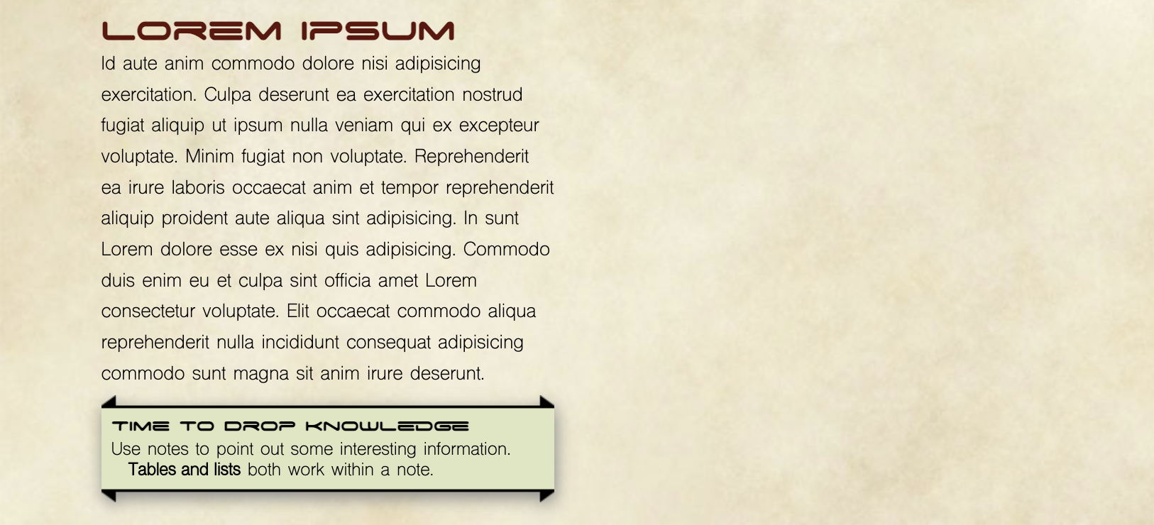 There we go. I should also note that I have these fonts installed locally on my computer, which works here since I’m just taking screenshots. These fonts are not available normally in the Homebrewery unless you import them yourself.