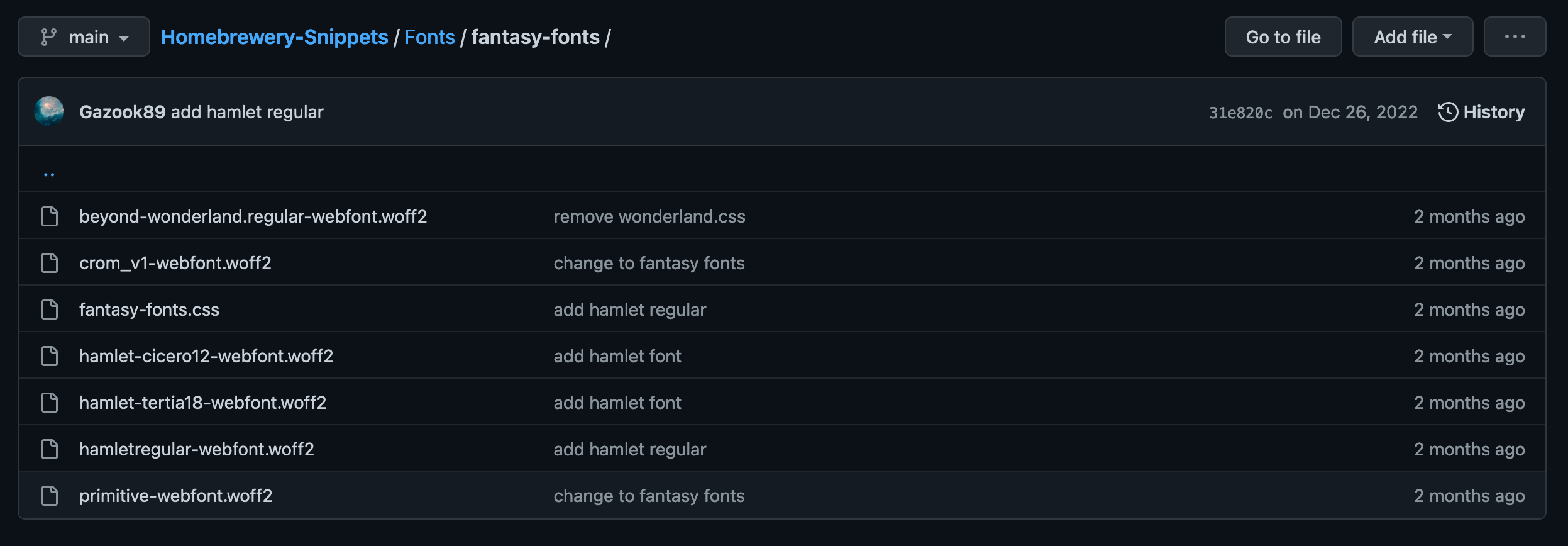 If you can’t find a satisfactory font to use on Google Fonts, and you are ready to do quite a bit more work, you can follow along here. There are a few things I should mention first, though. First, if you are going to use a font you downloaded from somewhere else, it is likely that the license of that font will have a prohibition against making it available where others can use it (a.k.a. redistributing the font), which the following steps will do. Take the time to read the license, which might also require you to investigate the true source of the font. Second, this process will require the use of a Github.com account (free), and you will be uploading the font there to use it in your brew.