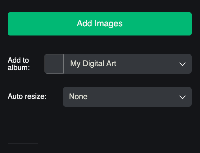 To start, all of your images are in one general pool. To create a folder, find the “New Album” option in the left dropdown (“All Images”):